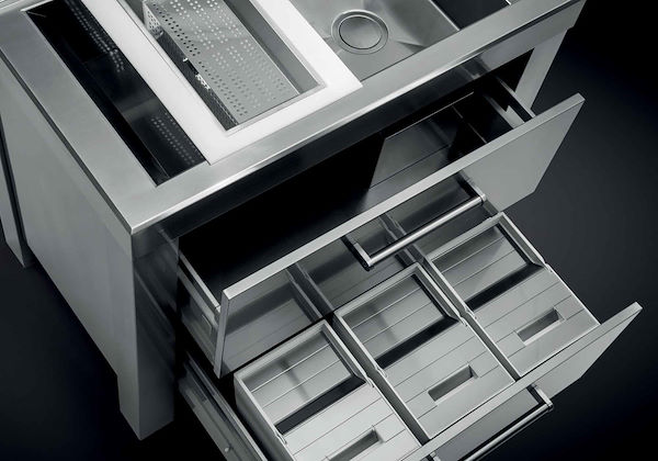 Squared bowls - 0/9 radiusThe square bowls of Foster have perfectly squared vertical edges, while those on the bottom have a small radius of 9 mm that facilitates cleaning operations.