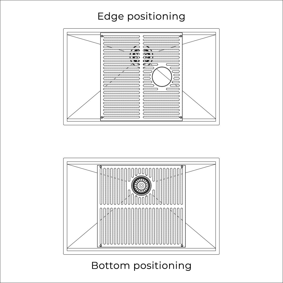 Double recessThe "rails" system makes it possible use a combination of numerous accessories. Grids, Chopping boards, utensils' ranging systems, bowls and containers of different dimension can be alternates in the workspace with a simple gesture, and can easily be stacked, in order to be on hand at all times.