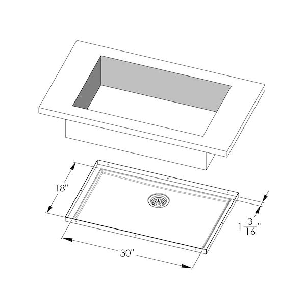 PHANTOM BASE 30 mmThe Phantom BASE sink’s bottoms are specifically engineered to be coupled with sinks made out of slabs. The perimetric trough makes for a simple and perfect installation. This version of Phantom BASE is meant for slabs of 30mm thickness.